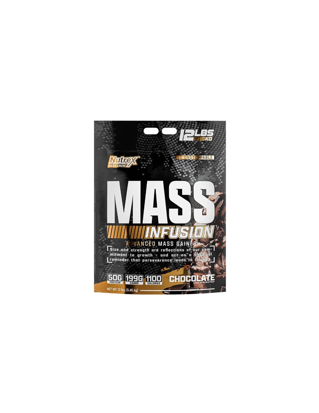 Mass Infusion de Nutrex (12 lbs) es un ganador de peso avanzado de alta caloria, diseñado para aumentar masa muscular y fuerza rápidamente. Cada porción aporta 50g de proteína, ~1120 calorías y 200g de carbohidratos, ideal para personas con metabolismo rápido o que buscan volumen. Contiene una mezcla de proteínas de rápida y lenta absorción para soporte continuo.